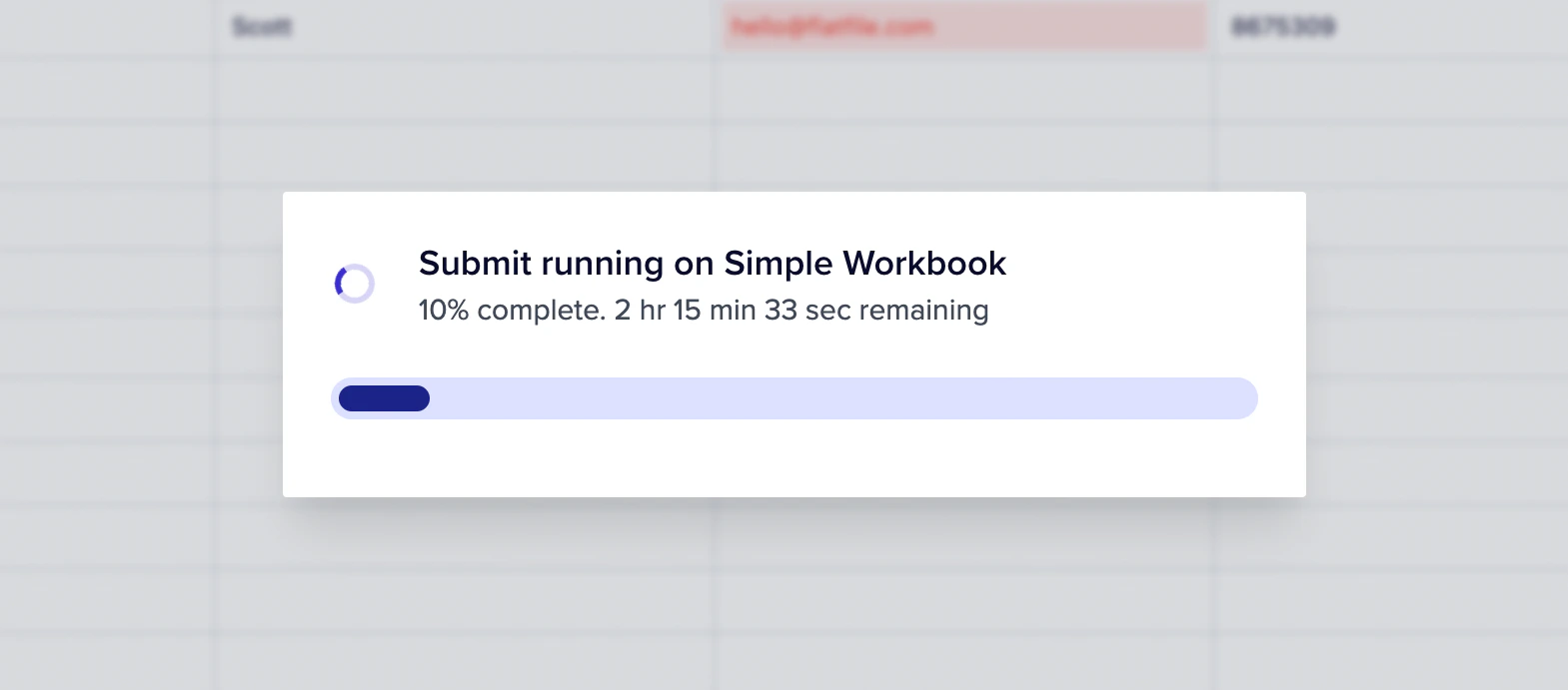 An estimated completion time. The UI will display the estimated processing time in the foreground Job overlay.